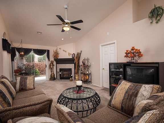 Great two bedroom, two bath, two car garage town-home in the highly sought after Crossings subdivision. The home comes with all the furniture and furnishings with a few exceptions. Master bedroom is separate on the back of the house with a nice walk-in closet and shower. Wood burning fireplace really sets off the living room. Kitchen has plenty of counter space with a breakfast nook with ample windows. Utility room has washer and dryer conveniently located next to the second bath and bedroom. Back patio covered and fully fenced. There is a community swimming pool and the grounds are well taken care of. The Crossings is located a nice walk from the Eureka Hotel Casino and Spa. Come check the growing, well planned city of Mesquite.