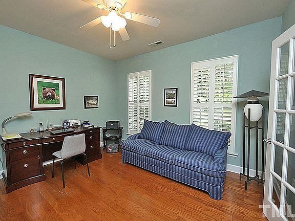 The welcoming front porch is a hallmark feature of the Bluffton Cottage. With 2274 sq. ft., it provides the best in one-story living with an open transitional floor plan. Hardwood floors grace the dining room, living room, sunroom, kitchen, breakfast nook and office (which could also be a bedroom). The gourmet kitchen boasts s.s. appliances, upgraded raised panel cabinetry, Zodiac counters, and a serving bar. Custom builtins flank both sides of the gas log FP. 2nd bedroom w/en suite bath.