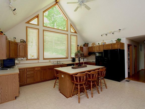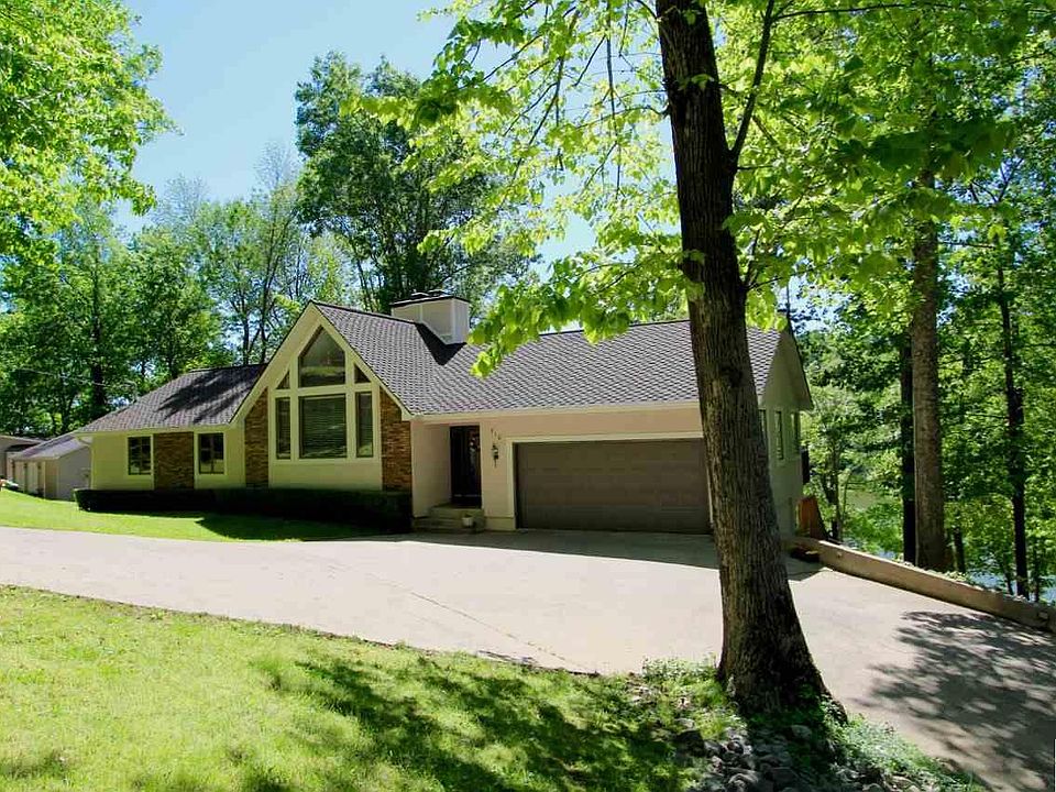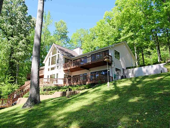 Awesome lakefront home with main lake views & deep water private dock. Sliding glass doors to deck from all rooms except the 2 kitchens. Main level living room with 2-sided gas fireplace & large office. 5th bedroom used as office. Lower level family room, exercise room with sunken hot tub. sauna & shower. Dining room with kitchen (separate quarters?) with 2-sided wood burning fireplace. Zoned HVAC with 2 new heat pumps in 2013. THE THIRD LOT #54 IS INCLUDED WITH 40 X 40 INSULATED BARN WITH ELECTRIC AND DOORS ON BOTH ENDS FOR DRIVE THROUGH