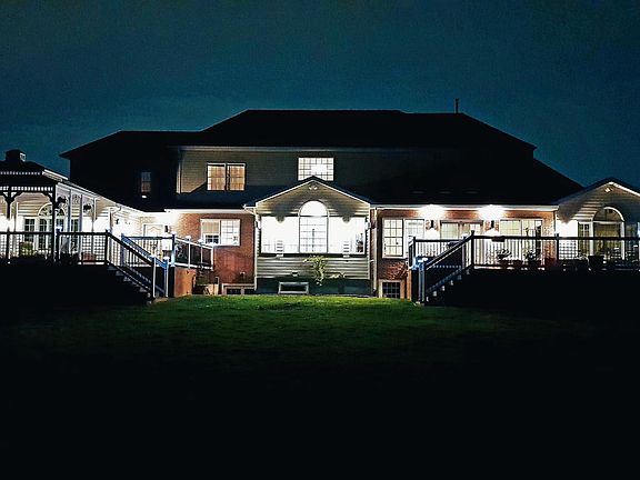 This custom-built luxury home is originally built as an Edgebrook model by Toll Brothers Estates, this home has been extensively updated with custom additions as recently as 2018. Situated on approximately two acres of land, the house boasts a private location backing onto a farm, providing uninterrupted views of sunrises and moonlit evenings. Every detail has been carefully considered, from the custom additions to the luxurious details throughout, including nine-foot ceilings, Brazilian hardwood floors, designer tiles, and custom cabinetry throughout. With around 7,000 SFT of living space, and approximately 3,000 SFT of fully finished basement, this home offers everything you need to make the most of your lifestyle. The main entrance leads to a stunning turned staircase with two large pillars in the foyer area, along with a formal living, a formal dining with wine rack butler cabinet, guest hand-wash sink, and a powder room. Beautiful gourmet kitchen features cherry wood cabinets, upgraded stainless steel appliances, a double-duty external exhaust vent, and a Sub-zero refrigerator. With a spacious granite island that doubles as a family sit-in dining area complete with hidden chair storage, this area also features excellent views of the natural farms, backyard gazebo, and deck with direct sunlight. The family living room and a grand room boasts a see-thru fireplace and access to a dedicated and quiet office room, while a magnificent east-side expansion added in 2018 provides a beautiful Florida Palm Beach sunroom and yoga meditation room, both with high ceilings, automatic open/close glass ceiling windows. This house has a custom-built private in-law suite with excellent views which is located on first-floor with attached full bathroom and a walk-in closet. The custom and expanded mudroom is a delight, with beautiful closets for coats, pullout drawers, a dedicated shoe closet, and wood-matching tiles for easy cleanup. The mudroom area also features a second large refrigerator and a custom-designed laundry room with dedicated clothes folder area with a granite countertop. Upstairs, the sumptuous master bedroom suite features a private den, two very large walk-in closets with custom shelves, and a master bath with a vaulted ceiling, a roman bathtub with farm view, two vanities, a dressing area, a shower, and a private toilet area. The secondary upstairs bedroom features a walk-in closet and attached private bathroom with beautiful views. Two children’s bedrooms are attached to a Jack & Jill bathroom with two separate vanities and a bathtub. The basement is designed for entertainment and has a walk-out to a beautiful gazebo, deck, and a large green backyard. It boasts of a well-managed home theater with excellent acoustics and a built-in AV system. Additionally, there is a dance floor area, two large sitting areas, a full wet bar with a customized cabinet and granite countertop that can be used as a second kitchen. The basement also has a full walk-in bathroom with a stand-up shower, tiled bench, and walls that are designed to convert into a potential steam/sauna room. There is a large Nanny suite-bedroom in the basement. The basement also features a large gym with a sports room, shelves, recessed lights, and rough ins for a potential second bar. The outside of the house is beautifully landscaped with EPHenry stone pavers and retaining walls with inbuilt landscape lighting. The three-car garage has custom carpentry with huge hidden storage closets. In conclusion, this luxurious and extensively updated property offers the perfect combination of relaxation and practicality for both work and family life. With its stunning location in a sought-after upscale neighborhood within a blue-ribbon school district and just a short drive from a charming town center, this home offers the best of both worlds. We invite you to schedule a showing today to experience it for yourself.