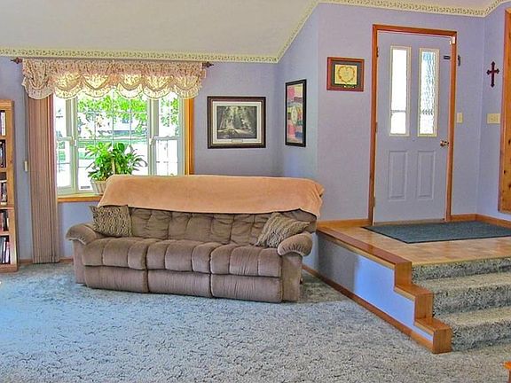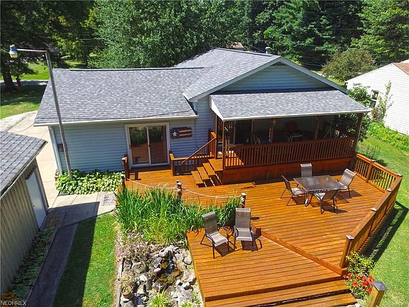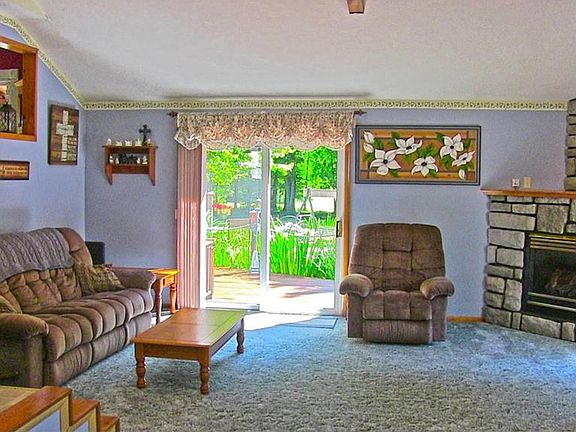 Wonderful 3 bedroom ranch with 4 car garage on over 2 acres! Features Huge Great Room with ventless gas fireplace, eat in kitchen with new countertops, backsplash, and flooring, overlooking new 3 tiered deck and acres of land to the river! Also features wood burner in the garage and newer roof in 2011. Very meticulously maintained home to call yours!