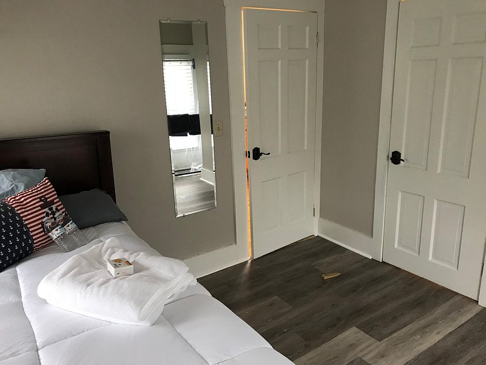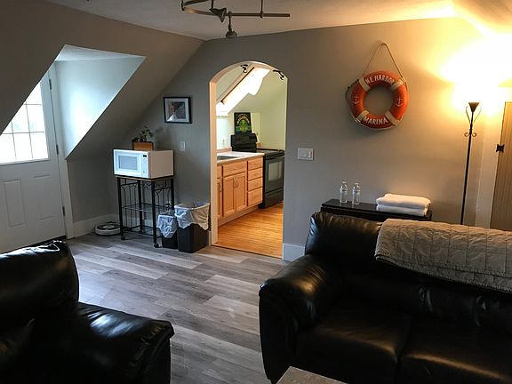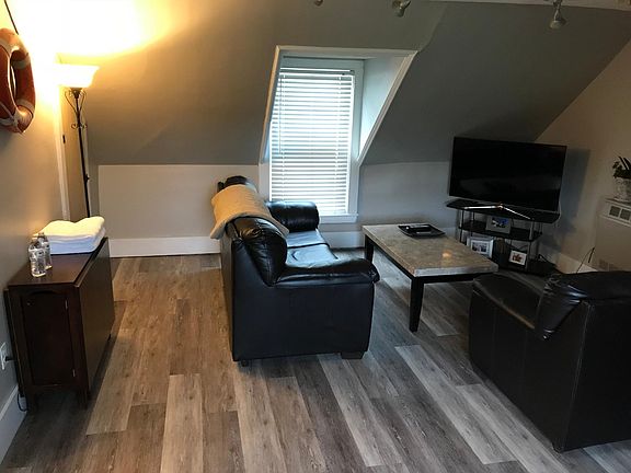1 Bedroom 1 bath second floor apartment in South Portland! Fully furnished with full bed, dresser, pullout couch, loveseat, coffee table, TV and stand, and kitchen supplies (Microwave, pots, pans, dishes and utensils). Updated Kitchen with original hardwood. Tile shower and bathroom floor. Vinyl plank in bedroom and living room. This apartment has a hybrid electric heatpump water heater that is highly efficient and cost effective. Natural Gas service is essentially only needed in the Winter heating months. Located just over the bridge from Portland directly across the street from the newly opened Sea Dog Restaurant and the Greenbelt Walkway. Millcreek shopping area, Hannaford, Scratch Bakery, Elsmere BBQ, Fort Williams Park, etc are all just minutes away. Enjoy the convenience of South Portland while being 5 min away from Downtown Portland. Off Street parking. Large upstairs back deck and back yard area. Washer/dryer in basement shared with 1 other tenant. Free same-day curbside trash and recycling pickup. Landlord pays for water/sewer. Tenant responsible for heat/hot water/electric. Please no pets