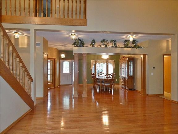 Welcome Home! This beautiful 4 bedroom plus home is not only spacious but functional. As you walk in the front door you will appreciate the formal dining area and 2 story great room with open staircase. Large eat-in kitchen with not only tons of cabinet space but an island with room to eat at, granite countertops, a coffee bar and a walk-in pantry. Main floor laundry room. 3 car attached garage. Main floor master bedroom with hardwood floors and walk-in closet. Main floor office space with French doors. Second floor has 2 bedrooms and a full bathroom. Walk-out basement with large family room with fireplace and entertaining space, bedroom, a non conforming bedroom, full bathroom and 2 storage areas. Enjoy the screened in porch and wrap around deck in the summer and custom firepit on the cool summer nights. New furnace and Central air unit in 2016. Located on a quiet Cul-de-sac.