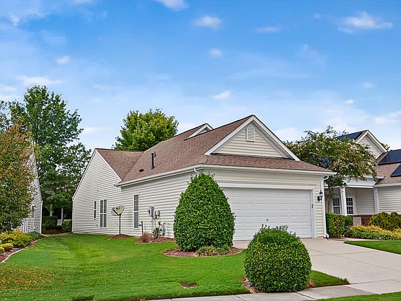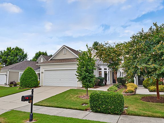 MOVE-IN READY RANCH in Cary's Premier 55+ Community! Live the resort lifestyle you've been dreaming of - PRIME location just steps from the award-winning clubhouse, pools, fitness center, pickleball, and more! 2025 updates include gorgeous new LVP floors, plush new carpet with upgraded padding, professionally painted interior throughout - including walls, ceiling and trim. The kitchen shines with newly refinished white cabinets, new LVP floors, granite counters, tiled backsplash, stainless steel appliances, recessed lighting, and breakfast area. Spacious primary retreat features crown molding, new ceiling fan, fresh paint, plush carpet, and a spa-like ensuite with walk-in shower, dual vanity, and large walk-in closet. Additional highlights include new dining room lighting, new ceiling fans, 2'' blinds throughout, and an inviting sunroom with dual sliding doors. Fresh power washing, newly painted garage, and meticulously maintained systems—HVAC serviced annually, water heater (2021), stainless steel refrigerator (2021), plus washer & dryer all convey. HOA covers lawn and landscaping. Enjoy the indoor/outdoor pools, tennis, pickleball, bocce, fitness center, walking trails, clubs, and social events. Conveniently located near RDU, RTP, Downtown Cary, Raleigh, Fenton. Shopping at Parkside, Cary Park Town Center, Target, Whole Foods, Wegmans. Minutes to the American Tobacco Trail and greenways!