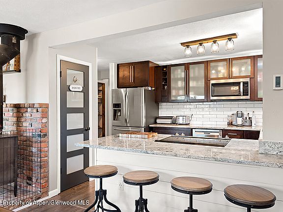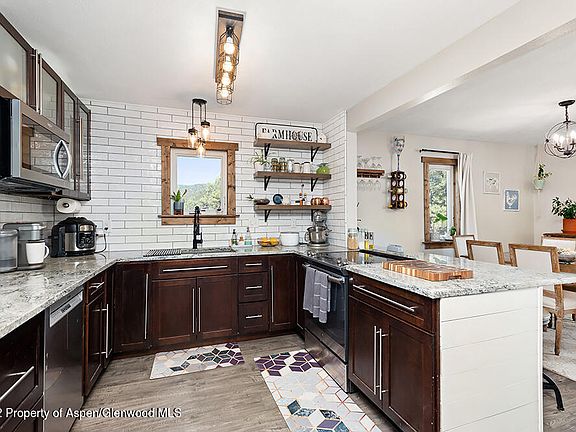 Unobstructed views of Basalt Mountain from the wrap-around deck of this modern farmhouse on 4.75-acres, with an oversized 2 car garage. Extensively remodeled, balancing the charm of a classic farmhouse with modern amenities. Luxury vinyl plank water-resistant flooring and new carpet throughout the home. New kitchen with granite counters and peninsula with bar seating, new energy efficient stainless steel appliances, new windows and doors, and pre-wired for an electric car charger. Walk-out lower living area and suite with attached sunroom that opens to the patio & hot tub. The area outside of the sunroom is fenced for your four-legged friends. Roughly 3 fenced acres with 2-stall loafing shed. 12 minutes from Catherine Store Rd and just down the street from 500-acre Sutey Ranch trail system