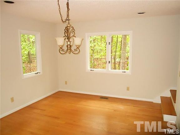 One of the larger homes in Robins Wood, close to Carrboro, with a large secluded lot, 3 bedrooms with 2 bonus rooms, wood floors in the public spaces, office/study, large deck, fireplace and more. Great price for a quiet home in the woods off a quiet cul-de-sac in the Chapel Hill school district.