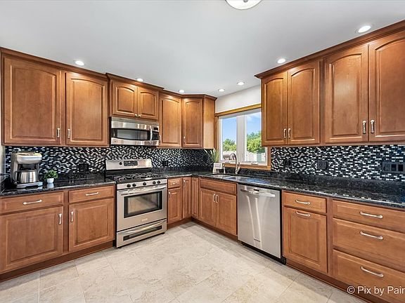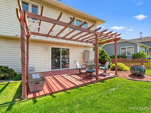 Welcome to this meticulously maintained 4-bedroom, 2.1-bath split-level home! As you step through the newer front door (2022), you'll notice the home's thoughtful updates and inviting atmosphere. The kitchen is a chef's dream, featuring a pull-out spice cabinet, touchless faucet, under cabinet lighting, convenient pantry space, and USB-equipped outlets. In the family room a cozy gas fireplace awaits. From there step outside to enjoy a beautifully landscaped fenced yard, perfect for entertaining with its deck and pergola. Two handy sheds add convenience for outdoor storage. In the finished basement, you can enjoy the convenience of creative storage solutions and a handy space for folding your laundry or crafting to your heart's desire! Furthermore, enjoy peace of mind with a backup sump pump and a whole-house fan, complemented by smart thermostat technology for optimal climate control. The roof and gutters were replaced in 2017 and the windows were upgraded in 2014, enhancing comfort and efficiency. The 2 car garage not only has beautifully epoxied flooring but it also has a bump out for fantastic year round storage! There are no HOA fees associated with this property. Its location offers close proximity to schools, shopping centers, and expressways, making it a perfect blend of convenience and style. Don't miss the chance to make this exceptional property your new home.