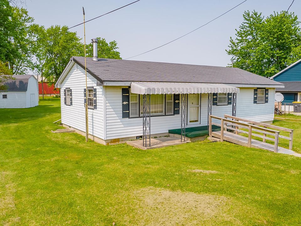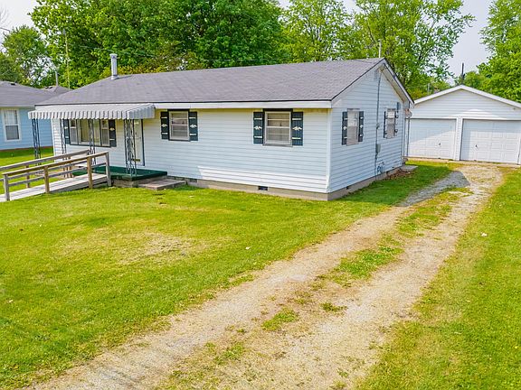Cute 3 bedroom home on a large L shaped lot in Tipton! This home has a ton of potential! Hardwood floors under the carpet, kitchen appliances all remain, including the washer & dryer. 2 car detached garage, and a large 2 story shed offer plenty of storage space. Home is being sold in AS-IS condition.