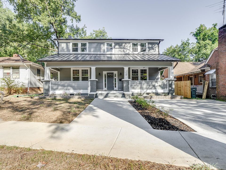 Price Improvement!!! Walkable to Duke Park. Great home for entertaining. Classic covered front porch w/ dual fans & Trex decking. 4 Large bedrooms w/ 2.5 baths. Kitchen with granite breakfast bar, pot filler, built-in oven, microwave, & gas cook top. Ample cabinet space w/ pantry. Spacious dining room with light picture framed inlayed hardwood. Hardwood floors on the main level. Owner's suite has a elegant on suite bathroom, huge walk in closet, and recessed lighting w/dimmer. Hall bath has a garden tub, granite dual vanity, with brushed nickel features. Living room has modern gas fireplace w/ white granite hearth and stone backdrop. Stairwell has hardwood treads w/ rod iron spindles. Large stone patio w/ private fenced cleared backyard. Energy efficient spray foam insulation in the attic. Tankless gas water heater. Home completely rebuilt in 2018. 1st floor exterior framing and study decorative fireplace are the only items remaining from the original house.