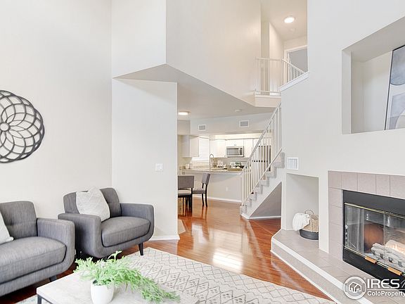 Remodeled 2 bed/3 bath 2 story condo w/ attached garage and reserved parking space in the Copper Crest neighborhood in Louisville. This rare end unit & desirable floor plan w/ extra bathroom is located in the best location of the complex. Main floor features guest bathroom, separate laundry room w/ washer/dryer, recent laminate wood flooring, vaulted ceilings & tall windows that pour an abundance of natural light and volume into the great room which also includes a gas fireplace. Remodeled kitchen w/ new granite counters, cabinets & stainless steel appliances. Upstairs bedrooms have newer carpet, en suite bathrooms which were recently renovated including new vanities, tile, flooring, light fixtures & plumbing fixtures. Primary bedroom has its own private deck to enjoy your morning coffee. Newer furnace, A/C, hot water heater, & high end blinds throughout. Located in Louisville, "voted best place to live" w/ convenient access to shopping, restaurants, Coal Creek Golf course, trails and easy commute to Boulder/Denver via 36. HOA includes outdoor pool, hot tub, and clubhouse. Pets allowed!