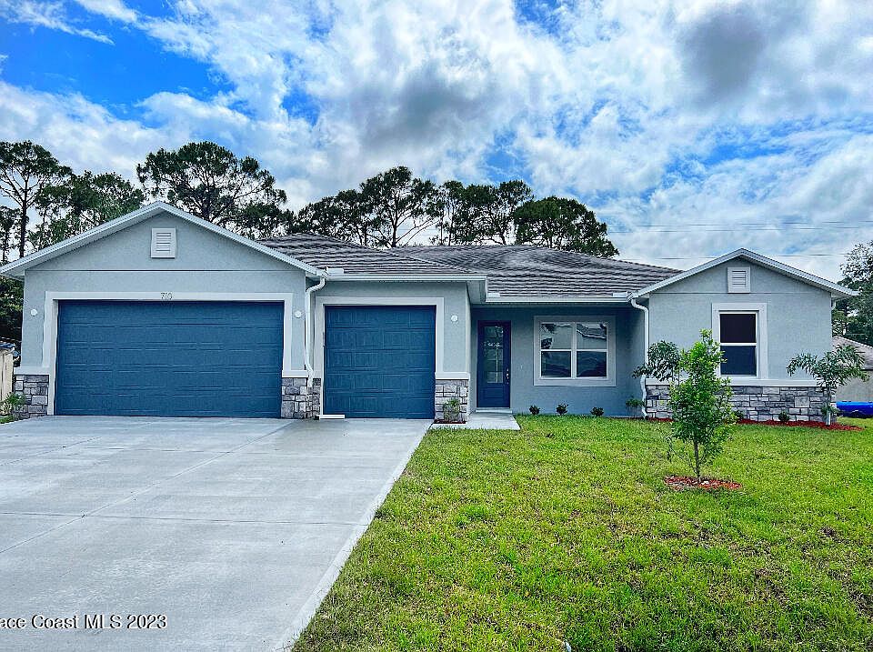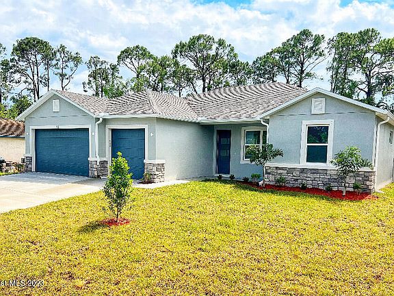Newly built home in the beautiful city of PALM BAY. This is a high-quality home with exquisite interior and exterior finishings, it offers 3 Bedrooms, 2 baths in 1807 adj SQFT. Perfect home layout with a gorgeous open kitchen that includes the following...-Majestic Quartz countertops in Kitchen and Bathrooms, -brand new stainless steel appliances, -Mohawk Porcelain Tile 8 x 48 imported from Spain that is installed throughout the whole house (MAJOR UPGRADE). -30x30 White Marble Porcelain tile in Master Bathroom walls -9\'4\'\' heights throughout the home. -50 Gallon Electric water heater, -Maxim lighting fixtures, -Carrier HVAC with a 15 SEER2 Rating (Very Efficient) -Double Panel insulated vinyl windows -Insulated Garage Doors