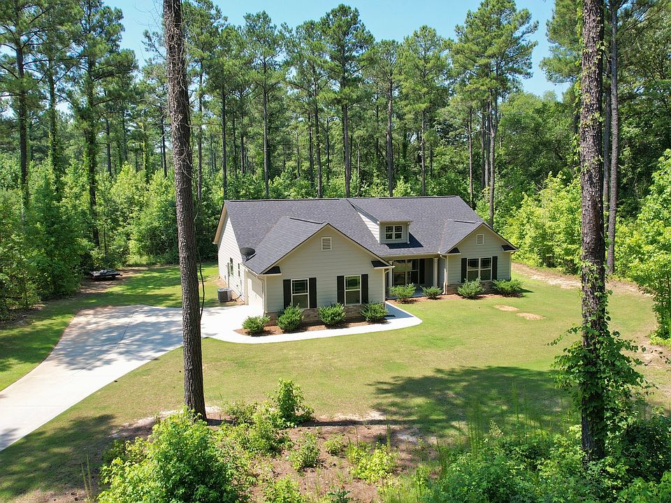 **USDA ELIGIBLE!!** Welcome to this charming ranch-style home nestled on a beautiful and private 2.5 acres of serene Senoia, GA countryside with NO HOA! Built in 2021, this home offers modern comforts and spacious living. Boasting 4 generously sized bedrooms and 2 full bathrooms, the split floor plan ensures privacy and convenience. Enter into the heart of the home, where a large open kitchen awaits with a breakfast bar and sleek quartz countertops, perfect for both everyday meals and entertaining guests. The living spaces are bathed in natural light, creating a warm and inviting atmosphere throughout. Step outside onto the covered back porch, an ideal spot for relaxing evenings or hosting gatherings with friends and family. Back yard is private, flat and perfect for a pool! Enjoy the country views of surrounding greenery, offering a peaceful retreat right at your doorstep. Situated at the end of a private gravel road, tranquility and privacy are yours to enjoy. Whether relaxing on the front porch with your morning coffee or unwinding on the covered back porch at sunset, this property provides the perfect blend of comfort and country living. This property also offers High Speed Internet and a wifi connected garage door opener. Don't miss the opportunity to make this beautiful 2021-built ranch yours!
