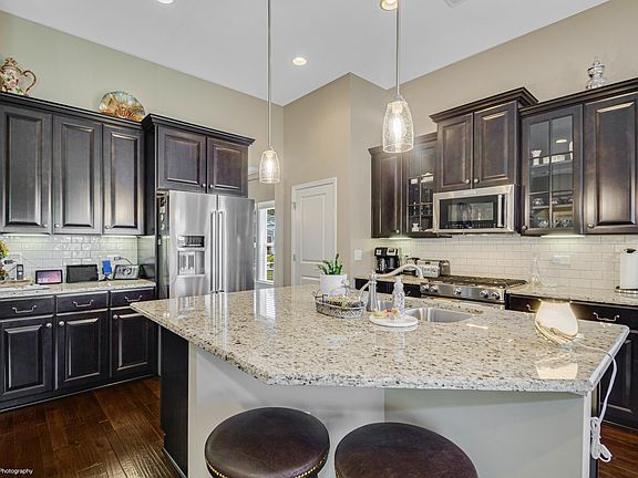 - Features: Breakfast Bar, Kitchen Island, Pantry, Stainless Steel Appliances, Solid Surface Counters