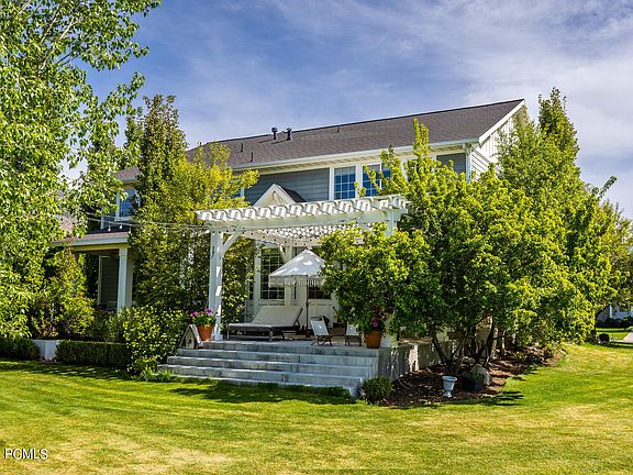 Arrive home to this classic style architecture in Midway surrounded by mature landscaping and a dreamy backyard. Crisp clean lines and a bright interior accented with hardwood floors are inviting upon entry. Custom wainscoting accents and lighting are found throughout this 4591-square-foot gem. The main level features an open floor plan flowing from the great room with white brick surrounding the gas fireplace to the dining area next to a large bay window, and into the contemporary farmhouse chef's kitchen with marble countertops, and a Wolf range, and a large walk-in pantry. From the kitchen, step out to the large pergola-topped patio shaded by tall trees. The spacious yard has an in-ground trampoline and vistas of Mount Timpanogos. The upper-level primary bedroom showcases the custom trim and lighting concept of the home and the suite continues to the spa bathroom with a soaking tub and large walk-in closet. Dutch Fields includes 2 pools, walking trails, a clubhouse with a sports court, manicured open space, and several parks. Close to golf, lakes, skiing, fishing, an endless trail system, and all that Midway has to offer.