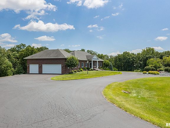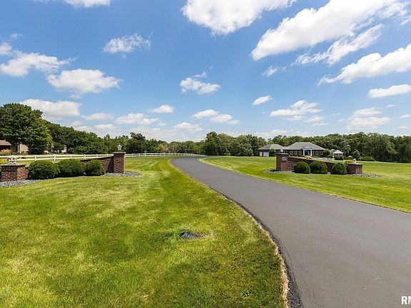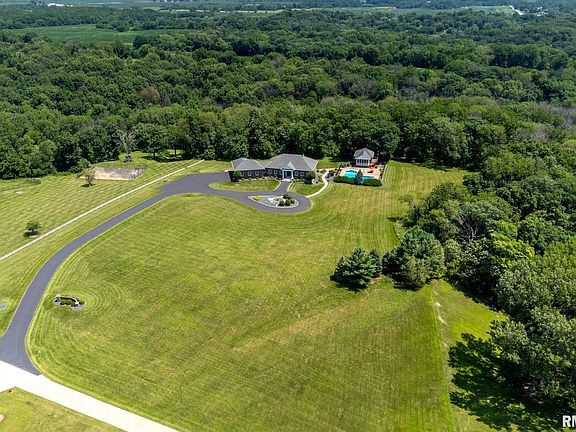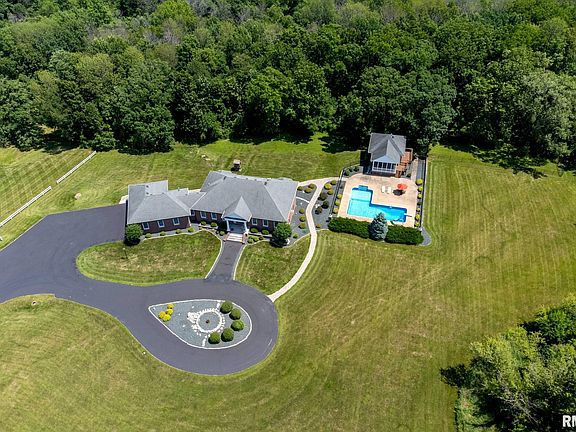 Spectacular brick ranch on 19.78 wooded acres with 2 creeks running through it! A welcoming foyer flows into the grand great rm with an open floorplan & 14 ft. ceilings, walnut floors, large kitchen with walnut cabinets & granite countertops adds to the sophistication of this home. Large master suite with remodeled bath & office/laundry closet right off the bedroom with access to the deck. The spacious walkout lower level has 3 bedrooms, 2 full baths, rec rm with fireplace & a 2nd laundry room with small kitchenette. Heated 5 car tandem garage. The amazing inground pool has a slide & diving board along with plenty of space to lounge in the sun. To top it off, enjoy watching friends & family play in the pool from the screened-in porch of the pool house. The pool house has family rm, kitchenette and full bathroom! No need to go to the house to use the restroom or rinse off. Heated 2 car garage completes the pool house. New asphalt on driveway July 2023. See attached list of all improvements.