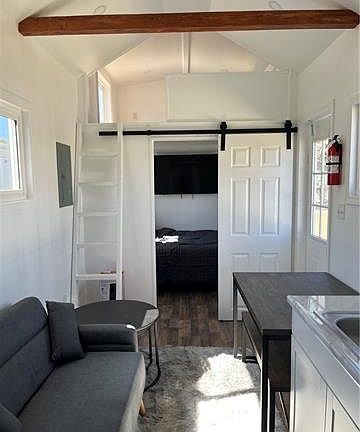 Cute, cute, cute tiny house for rent - offers privacy! Totally furnished with utilities plus Wi-Fi, paid by owner! Living room with couch and end table, dining/kitchen space with dining table with bench and refrigerator, 1 bedroom with full bed and mattress with two nightstands and television, plus a loft, and bathroom. Dishes, pots, pans, silverware and linens all included for your use. Huge porch off the front door. Includes a washer and dryer! Cement parking for 2 vehicles. Ready for you to move right in today!
