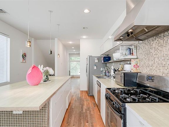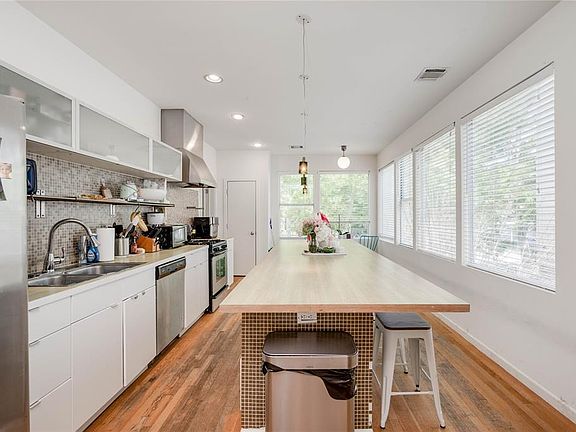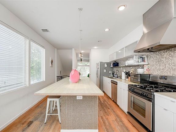 Gas cookingStainless appliancesTons of windowsWood and tile floorsHuge kitchen islandOff-street parking