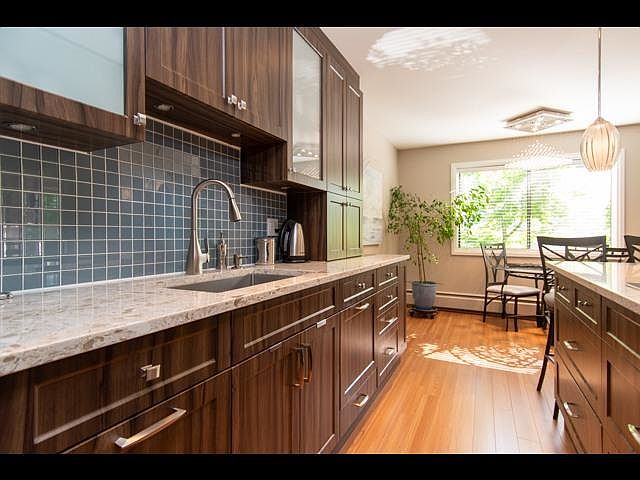 Green outlook in this extremely private, quiet and spacious 2 bed home in Mount Pleasant. Fully renovated and in exceptional turn-key condition. South and East exposures provide great light year round, nicely filtered by the tree canopy on the property. Stainless built-in appliances, quartz counters, recessed lighting, custom tiling, extensive built-ins and organizers, etc. Very large main bedroom and very generous room sizes throughout. Top location, walk to Main Street, Broadway, Commercial Drive shops and services. Nicely sorted building with aluminum siding, an excellent maintenance record and quality management. 2 large side by side parking spaces and 1 locker included. More info and photos on our web site, look us up!
