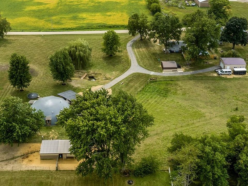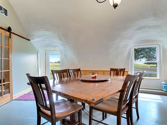 Check out this one-of-a-kind listing located on the edge of Polo! This 3.3 acre property includes a unique, fully remodeled 50ft diameter Monolithic dome home, a 28 x 20 hay barn, a 32 x 14 horse barn with three stalls, fenced pastures, 24x30 Wick pole building with concrete floor, lovely park like front yard including a seasonal pond with goldfish and frogs, and even a treehouse!. Fall in love with this rustic, cozy home that features all main floor living with an enclosed loft area. Entering the home you are greeted with a warm great room featuring space for living and dining with an open floor plan into a kitchen and live edge bar with hand hewn Pine posts. This home includes 4 bedrooms, 2 full baths, a great room, a beautiful spacious kitchen, an office room, and a recreational room upstairs with an additional bonus room. Masterful rustic touches include Ponderosa Pine ceilings and solid wood doors. The primary bath offers a walk-in slate tile shower, while the guest bath features a soaking tub, double vanities, and tons of counter space. The laundry room has a pet bath, and there is also a built-in kennel under the stairs. This home provides custom storage areas throughout, giving you space to store without clutter. Newer mechanicals have been installed such as an instant hot water heater and water softener ( 2017), entire ventilation system including ductwork, A/C, furnace and HRV ( 2022), and it has the option of in-floor propane heating. All appliances will be staying including washer and dryer. Located blocks from Polo Schools, outdoor public pool, and the 5 mile long Joe Stengel Trail for horseback or UTV use.