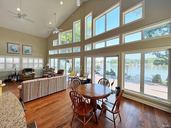 Lake level living at its finest in this 2012 built Lake Freeman beauty on coveted Terrace Bay Ct in the private neighborhood of The Lakeries. This estate is one of a kind, and the one you’ve been waiting for!! Upon entry, you’ll first find two generously sized bedrooms that share a Jack and Jill bathroom that’s complete with a dual sink vanity and walk in shower. You’ll then pass by a powder room and a large main floor laundry room with plenty of room for folding and a utility sink. It’s the great room though with its two story wall of windows that will make you know this is the one, as this room’s ability to capture panoramic views of Lake Freeman are unmatched. You’ll love this room’s awesome built ins and brick fireplace that spans from floor to ceiling. The kitchen shines with stainless Kitchen Aid appliances, upscale soft close cabinetry, and luxury grade granite tops. Upstairs you’ll find a loft area, the third bedroom that has an en suite bathroom, and two large storage rooms (7x27 and 8x29). The views from the newly painted dual tiered decks are the reason you buy a lake house though, and this one offers 50 feet of sea wall!! Lastly, there is plenty of storage via the massive 23x39 detached garage and tons of green space behind for yard games!! Opportunities like this on Lake Freeman don’t come too often and it’s only a 35 minute drive from Purdue!!
