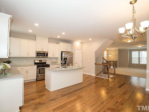 End-Unit Townhome with 3 floors of LIVING! Steps away from Apex Comm. Park offering over 3 miles of developed nature and fitness trails, fishing, tennis, basketball and MORE! Open-concept Living! Gourmet kitchen W/gas stove and island just steps away from the spacious family room flooded w/ NATURAL LIGHT. Upstairs is a large Master bedroom/bath with HUGE walk-in closet. Two additional bedrooms and laundry complete the upstairs. Large Bonus on the lower level. Deck w/wooded view and room to play outside!