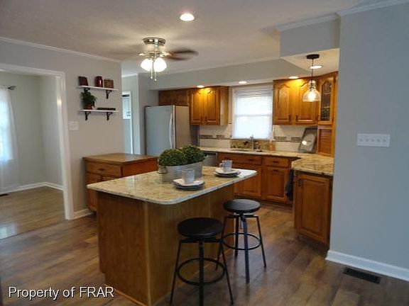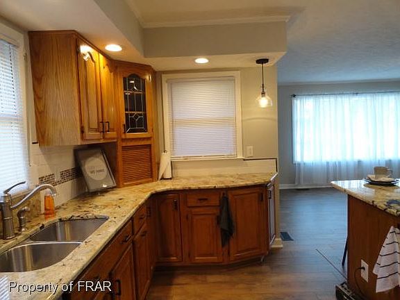-Completely restored home,with original hardwoods, new roof, plumbing,water heater,and some electrical.Custom wood cabinets,granite counter tops and tile back splash in this HUGE kitchen with new SS appliances and two islands. Jetted tub, all new ceiling fans in every room. Large new deck and a large heated and wired building in the back. Three bedrooms and two baths, all brick home with storm shutters.Fenced private backyard.