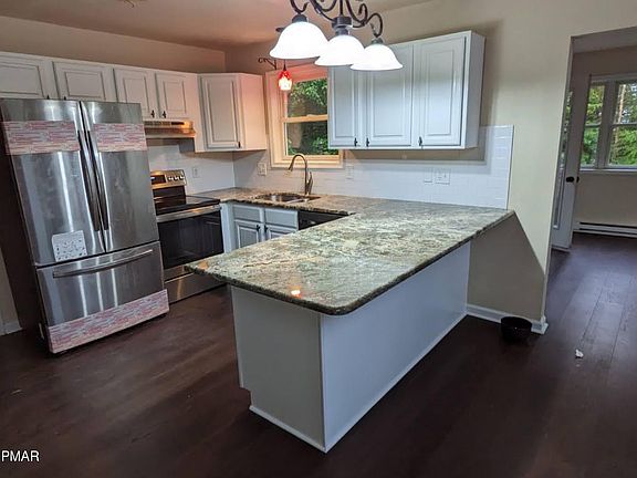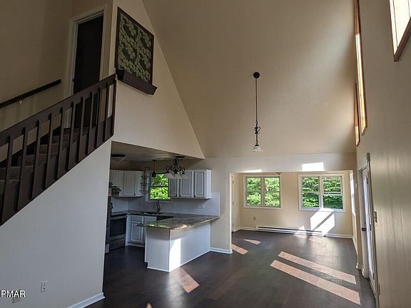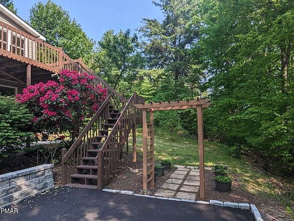 NEWLY RENOVATED RAISED CHALET on OVER 4 wooded ACRES! This is a MUST SEE to be Appreciated! Features New Kitchen with SS Appliances and Wrought Iron Light Fixtures, Large Living Room with Wood Burning Stone Fireplace, Dining Room or Sun Room with Exterior to Large 10 X 36 Southern Facing Deck. Private Primary Suite on 3rd Floor and Large Family Room on 1st Floor. Small CREEK Runs in the Front of the property, Paved Driveway, Large Patio Area, Mature Landscaping and Rustic Firepit Under the Maple Trees. Endless Possibilities Await You! Major Price Reduction to Make More Affordable with Today's High Interest Rates!