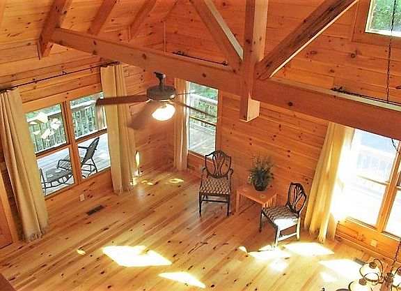 Fireside log home that is situated in the center of almost nine acres covered with mountain laurel, and rhododendron. From the large covered front porch, enjoy the sound of over 800 feet of rushing Payne Creek featuring multiple waterfalls, rock shelves, and huge boulders. Vaulted main floor with a large great room, exposed beams, and tongue and groove ceiling. Loft with oversized roll-out widows. Main level includes, kitchen with Durastone countertops, hickory cabinets, two bedrooms, and bath w/heated floor and whirlpool tub. The lower level has large room with a wet bar, third bedroom, full bath, and mechanical room w/washer/dryer hookups. Walkout access to the covered concrete patio.