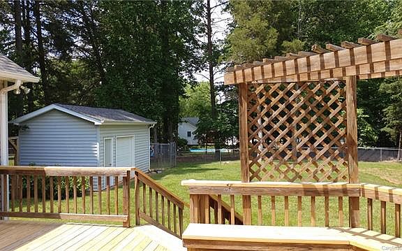 Attractive, one-level home with a 3 bedroom, split floor plan. The beautiful wood entry door has a center oval window, framed by 2 sidelites. The entry hall has 2 closets and pretty oak flooring. Carpets have been cleaned, and the home is clean. The kitchen cabinets offer pull-out drawers in most of the base cabinets. From the kitchen's corner sink, you can enjoy a view of the fenced rear yard and the large deck. There's a separate pet fenced-in area, inside of the fenced rear yard. The wired, 12' x 20' detached storage building has a walk-through door as well as a roll-up door. Garland Place is a well established subdivision located in Granite Quarry (Salisbury Address). Granite Quarry offers several recreational parks, restaurants, pharmacies, gas stations, and other shopping, school and medical needs.