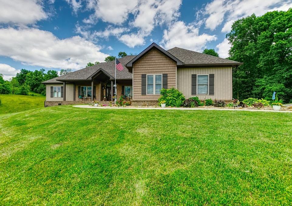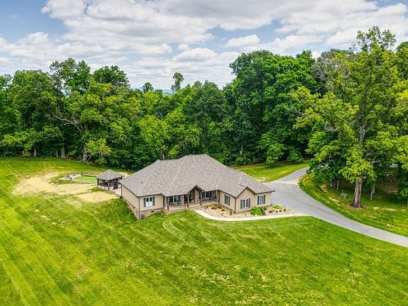 Enjoy quiet evenings at home with gorgeous mountain views and still within 5 minutes of modern convenience! This 20 acre estate includes a generous sized ranch home that is surrounded by privacy. This pristine home has an open floor plan with loads of extras that make this the perfect place for entertaining. The kitchen includes custom hickory cabinets, granite countertops, stainless appliances & a large bar for extra seating. The two spacious living rooms both have gas fireplaces. This home has a split bedroom design with a very large master suite that leads to a private patio in the back of the home. There is a home office & a craft room included as well. The sunroom can be used year round as it has removable windows and fireplace. Step out of the sunroom onto a newly landscaped patio with a fire pit that also leads to an outdoor grilling structure, a putting green and sand bunker. There are so many features included with this property including a 40 x 76 detached garage-must schedule showing to experience all this home has to offer.