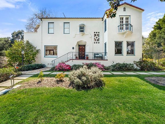 Perched on a gently sloped lot, this charming 1926 Birge Clark designed home has been lovingly cared for by the same family for 54 years. It is ready for a new owner to make it their own. A formal entry graced by a period chandelier sets the tone for the look and feel of this gracious home. The living room and dining room, visible from the entry, have stunning natural wood trim that has been beautifully restored, paned windows and hardwood floors. The dining room has french doors that open onto a charming patio, integrating the outdoors into the living space. The kitchen looks out onto a delightful rear garden with a large brick patio and lovely plantings, a perfect spot for for quiet relaxation or entertaining large groups. The downstairs space is completed with a den off the kitchen, a large bedroom and a full bath. Upstairs are 5 more additional bedrooms including a primary bedroom with en suite bath and balcony which commands views of the east bay hills. The other 4 bedrooms are nicely sized and served by a hall bathroom. This is a rare opportunity.