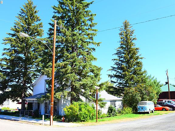 Commercial/Residential property in Haines, OR. Colonial 2 story style home on corner lot with 3 bedrooms and 1 bathroom. Home has had several updates, new vinyl windows, new heating system and hot water heater. There is a fenced back yard with patio area, covered front porch and detached 1 car garage/shop.