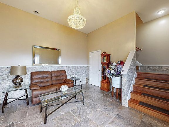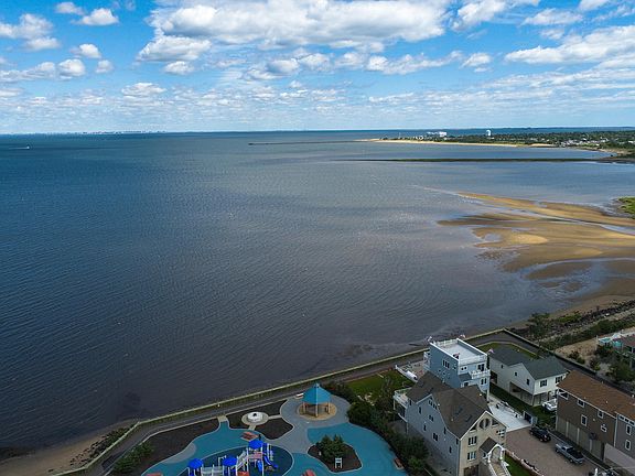 Family friendly, Manhattan skyline view. 5 bedroom 4.5 bathrooms unique beach front property. Enter the home from the large ground level ceramic tiled foyer or use the exterior elevator to the first floor. Open concept living area featuring a large custom kitchen modern appliances & granite counter tops. Hardwood floors throughout the home. Each of the 4.5 bathrooms are complete floor to ceiling ceramic tile. 3 of the 4 bathrooms have jacuzzi jetted tubs. Large multi level deck entertainment area complete with a bar, hot tub, and pool. The siding is maintenance free PVC. Custom High Efficiency ON DEMAND heating and hot water system add to homes uniqueness. This home is located 10 minutes to the train station and fast ferry to NYC, and is within 2 mins. walk to beach & restaurants