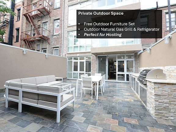 Graced with an array of sleek fixtures and finishes, this luminous 1-bedroom, 1-bathroom home is a paradigm of contemporary Brooklyn living. Features of the apartment include gorgeous porcelain tile flooring, a Daikin heating and cooling system, a convenient in-unit Samsung washer/dryer, and floor-to-ceiling sound-proof casement windows. THIS HOME COMES WITH 775 SQFT. OF PRIVATE OUTDOOR SPACE (PRIVATE GRILL, OUTDOOR FRIDGE, FREE OUTDOOR FURNITURE) AND ~100 SQFT. OF FREE INTERNAL STORAGE SPACE 710 Grand Street, 2R is the perfect apartment with easy access to all that Williamsburg has to offer. The apartment itself is equipped with a full washer-dryer in-unit, dishwasher, high ceilings and a modern luxury bathroom with waterfall shower and heated floors.