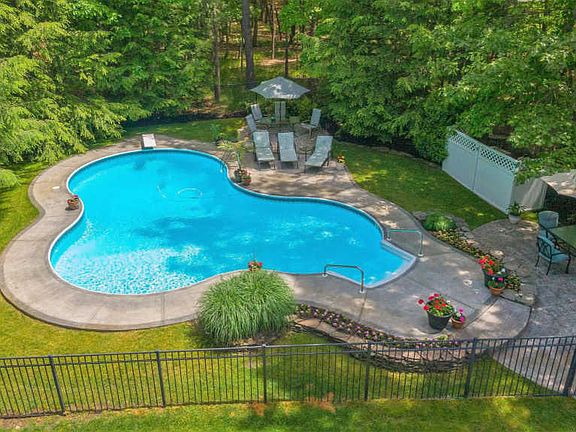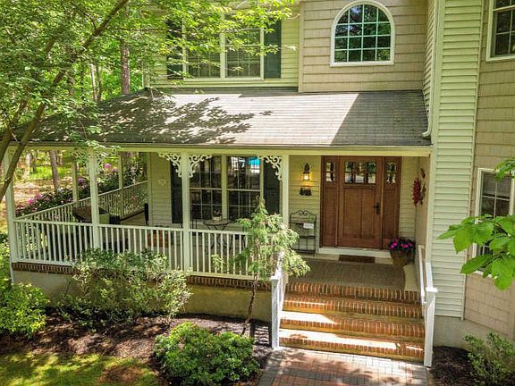 Everything about this home is awesome, and no wonder, it was custom built for the current homeowners. This 5 bedroom, 3.5 bath home is located on a two acre wooded lot with an in-ground pool and extensive custom landscaping for maximum privacy. A paver walk-way leads you to the Southern farmhouse style, wrap around covered front porch with a newer Craftsman front door that creates a welcoming entry as well as providing additional living space for those warm summer nights. Features include a gracious two story foyer with a cathedral ceiling, a wood staircase and newer hardwood floors that extend in to the kitchen and powder room. Crown moldings and wainscoting add architectural details. The floor plan flows seamlessly with formal living and dining rooms open to each other. There is also a First floor Library. The updated kitchen features a large center island, beautiful granite counter tops, a tumbled marble back splash with medallion inserts, a newer Bosch dishwasher, newer gas range with a decorative range hood, micro wave and refrigerator. A sliding glass door in the Breakfast room opens up to the resort style back yard with lush landscaping, a patio, in ground pool, hot tub and a large pool deck for taking in the sun, just an amazing outdoor living and entertaining space. The spacious family room features a gas fireplace, cathedral ceiling and plenty of windows that capture lots of natural light. A First floor Library and large laundry room with newer cabinetry complete the first floor. The luxurious Master bedroom with its~ sitting area features a large walk-in closet plus a wall closet. The master bathroom features a double vanity, large corner soaking tub and a custom shower with multi directional jets, a rain forest shower head and seamless glass doors. There are four large guest bedrooms; one of which is a princess suite with its' own full bath. There's tons of recessed lighting throughout. Additional amenities include, a built-in widow seat with shiplap, new interior door hardware, extra deep well for great quality water, new pool pump motor, new Polaris, new Polaris motor and pool safety cover, newer carriage style garage doors with automatic openers, large paved driveway with extra parking, Craftsman driveway lighting, Invisible dog fence and a 9 zone irrigation system. Staycation here this summer and enjoy the safe environment of this beautiful home and back yard for now and years to come.