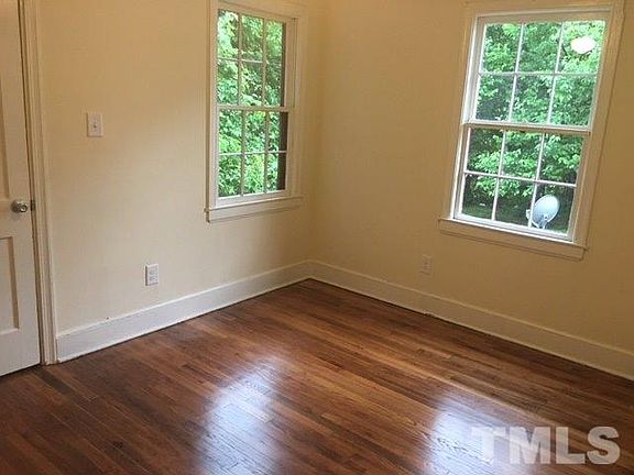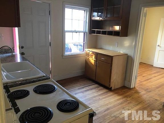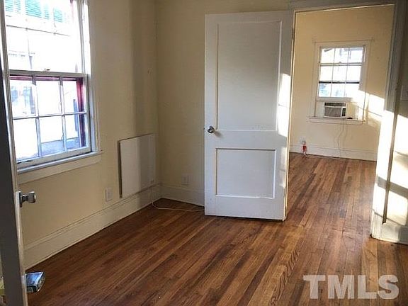 Adorable 1 Bedroom (+ Den) Apartment. One side of a duplex. Built in 1912. Renovated in 2017. It's vintage! Has refinished pine floors, windows, doors & German board siding. Living room has vaulted ceiling. Kitchen with granite countertops, fridge, electric stove & stackable washer/dryer. In the Old East End, close to Downtown Durham. Available now!
