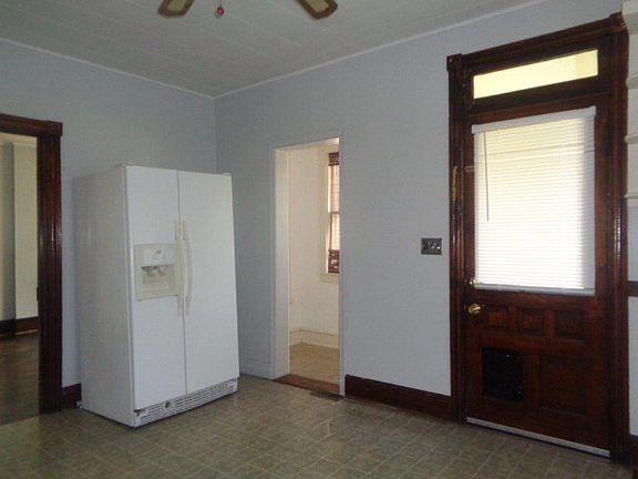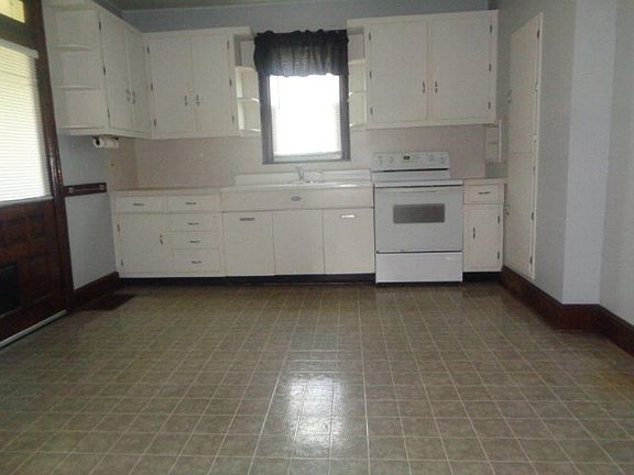 Well maintained half double features: kitchen appliances, replacement windows, first floor laundry and fenced yard. Covered front porch, rear paver patio and older detached garage. 3 blocks from hospital.