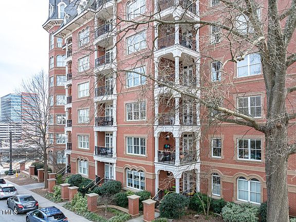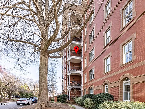 Elegance awaits in this rare, north-facing Bloomsbury Estates condo featuring a private balcony. Parking space #93, located directly outside building entry, greets you as you pull up to the lovely architectural landmark building. Key fob entry and call box provide security whilst the first floor boasts multiple community gathering spaces perfect for monthly events with neighbors that create a sense of community. Unit #403 features all new luxury vinyl floors throughout, as well as updated kitchen backsplash and fresh interior paint. Expansive use of space in a one-bedroom, one-and-a-half bath condo that lives large and open. Bedroom is a well-lit and extraordinary space that fits a king-size bed and dresser with room to spare. Large, walk-in closet plus updated full bath with unique tile work, dual pedestal sinks and frameless glass shower. Off the main living space, double doors welcome you to the private balcony with views of Hargett Street and a beautiful historic oak tree. Experience the epitome of Downtown Raleigh living without the direct hustle and bustle. Nestled in highly coveted Boylan Heights and just around the corner from Raleigh's Warehouse district with walkability to restaurants, bars, neighborhood markets, coffee shops, Red Hat Amphitheater, train station, and Dix Park.