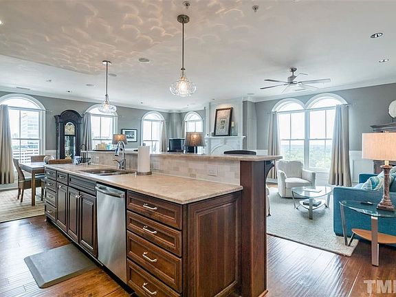 One of a kind executive condo. First class in every way in the magnificent Bloomsbury Estate building. This is the Penthouse level with every detail you would expect including a million dollar view from every window. Just gorgeous with hardwoods throughout, gourmet kitchen, spa like baths, European sun room, private parking. Just steps to the new train station, museums, restaurants & everything downtown Raleigh has to offer. If you wish to live the life then please do not miss this opportunity.