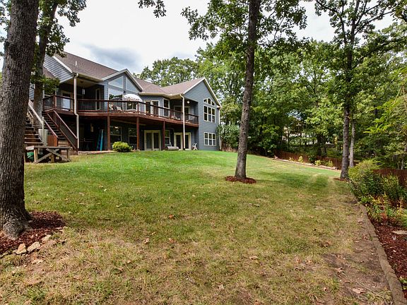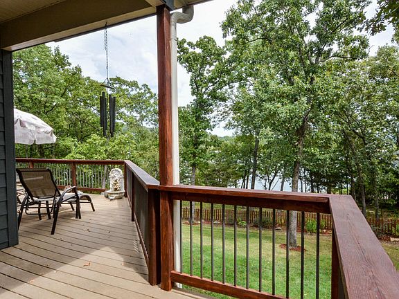 Table Rock Lake Front Living at Its' Best! Walk to the water to enjoy 135 ft of shoreline and within easy walking distance to community dock with a slip for you. (extra $30,000) Nicely maintained custom home with open floor plan, great for entertaining! Well designed kitchen with granite. Master Suite with spacious bath and closets with direct access to the deck. Additional guest bedroom and ozark room on main level. But Wait..lower level has the perfect guest quarters with large patio and recreational space. AND good storage with a workshop area. Mature landscaping, circle drive and fenced backyard with a true feeling of seclusion. Enjoy sitting on your deck watching the water, deer and birds. Located within 10 miles of all services, shopping and medical.