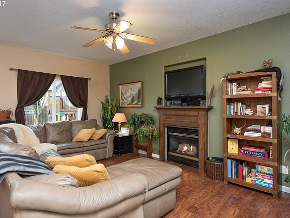 Located on a quiet cul-de-sac with a view of Mt, Hood, this traditional home features a covered front porch, gas fireplace in the large living area, formal dining, kitchen with eating space, master bedroom with vaulted ceiling, walk in closet, soaking tub in master bath, new sinks and faucets with motion sensors. Large fenced yard with planter boxes, RV pad and fire pit. The garage has built in work bench and sink.