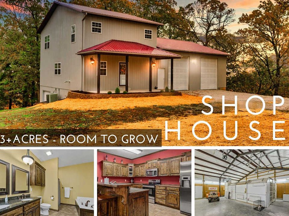 Tired of the city cramp? Need room to grow? Potentially a 4 bedroom, this 2 bed/2 bath home is the perfect, private, country get-a-way! Situated on a rolling 3.35 acre parcel, w/1700+ sq ft of 'finished', move-in ready, living space along w/1400+ sq ft shop, big enough for 2 RVs, boat storage, + some. The lower level even has 900 sq.ft. +/- nearly finished, John Deere Room-insulated, with HVAC, great for seasonal decor storage, extra food pantry, lawn equipment or finish out two more bedrooms + a bath (water/sewer access there). Low maintenance metal siding & metal roof allow you the extra time spent w/the family & friends & less time maintaining your home. Moving inside to the main living, the warm inviting color palette will instantly make you feel at home! Easy to care for, durable hardwood & ceramic tile flooring throughout. A cozy pellet stove in the main, open-concept, living area is ready to warm the holidays! The spacious modern, yet rustic, kitchen w/like-new, stainless steel appliances & plenty of storage options, opens into the living & dining area & breakfast bar ideal for quick morning meals or easy guest entertainment while you dinner prep. Upstairs find room to relax & rejuvenate in a spacious master w/ensuite overlooking mature hardwoods & abundant wildlife. Master bath boasts a welcoming corner jetted tub, double sinks on rustic wood vanity, & separate shower. Laundry is also located conveniently on the same level between master & second bedroom perfect for guests or the kiddos. Outside you'll have room to grow & explore on your private 3.35 acre retreat perfect for cutting walking/bike trails to enjoy all of Ozark Hills have to offer right from your back door. Have kiddos or grandkids coming to visit? Spacious flat back yard w/a playground area is sure to be a hit! Only 5 minutes to Branson west & Reeds Spring Schools, 15 minutes to Branson & Table Rock Lake. Escape that fast paced city grind & head for the hills @ 710 Keystone Rd.