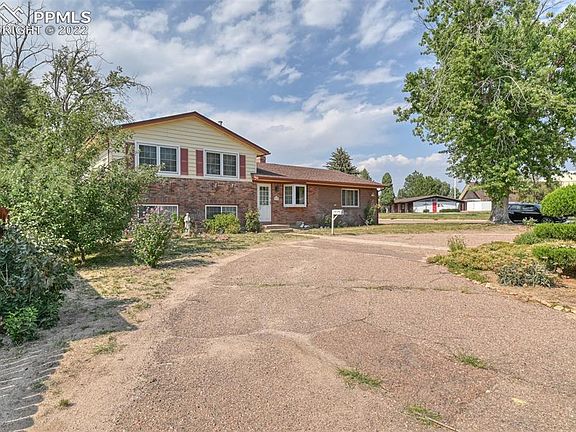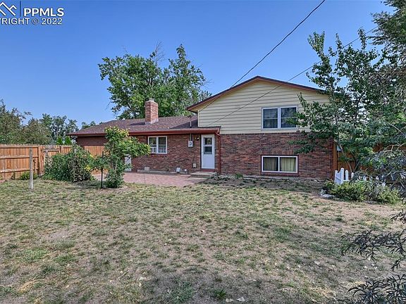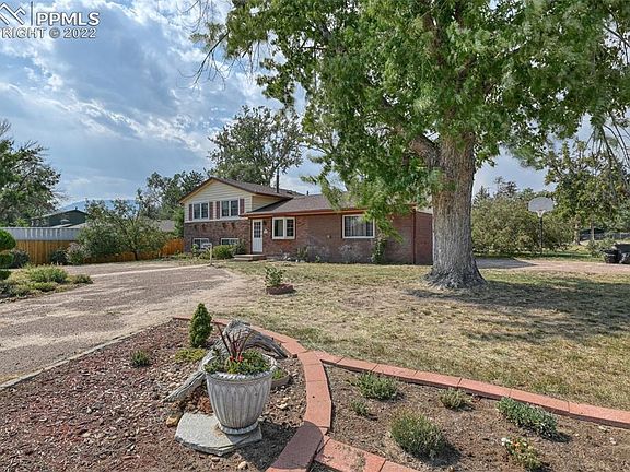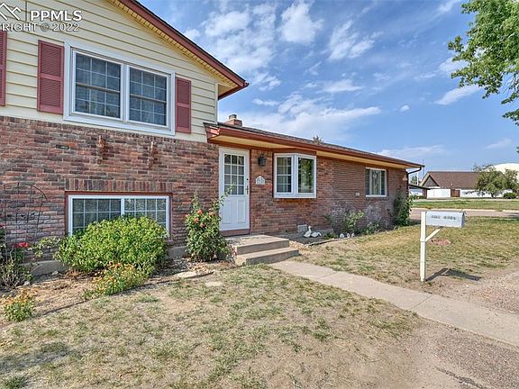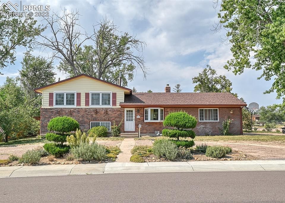 Looking for a corner lot with beautiful landscaping & fruit bearing trees? Circular driveway? Space from neighbors? Good bones but freshened up? This tri-level has 3 beds and full bath upstairs. Living/dining/kitchen/laundry on the main. And family room, 3/4 bath and 4th bedroom downstairs. The hardwood floor in the living room was recently refinished. New dishwasher and flooring in kitchen. Fenced backyard with brick patio. Two car garage with separate driveway. Quarter acre on a corner lot. Built in a time when you could space homes apart. Conveniently located near I-25, S. Academy Blvd and COS airport.