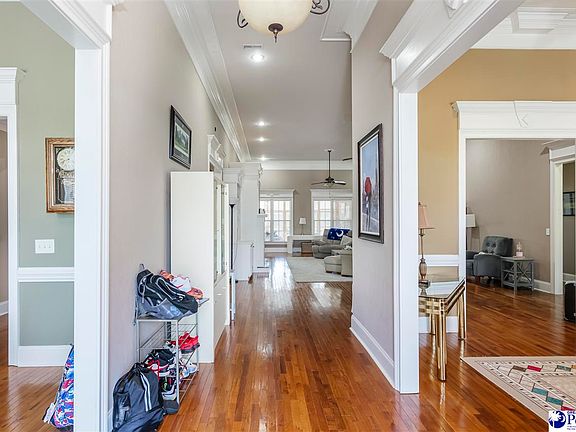 This custom single story home offers 3950 sf of incredible living space. You are welcomed from the foyer to an enormous open family room with fireplace and built-in shelving. This home is filled with custom decorative moldings and special lighting features. The beautiful hardwood floors flow throughout the family room, formal dining and living room then ushers you into the kitchen and breakfast area. What an amazing kitchen!!! The large island, granite counter tops, decorative backsplash, walk-in pantry and a butlers pantry complete with glass upper cabinets and this is just the beginning of the many intricate details. The owner's suite is complete with a separate sitting/office space hidden behind a rolling barn door and also offers access to the outside deck. The bath has a large tile shower, jet tub, double granite vanity and huge walk-in closet. There are 3 other bedrooms, all with gracious closets, 1 hall bath and 1 bath in a bedroom for that special guest. Extra room for home office or "get away" room. Enjoy the outside starting with a sunroom that carries you to the large deck, all in the privacy of a fenced back yard. This large corner lot allows for so much extra parking with circular drive . Home is efficient with 2 tankless water heaters and 2 HVAC Units. Alarm system (not activated) but camera security system with Amcrest View.