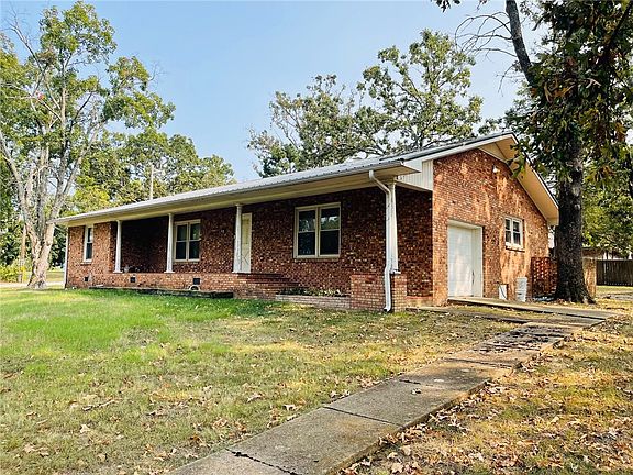 Nice brick home located in a great location, close to the Hospital, dead end street, just over 1/2 acre shaded yard. One car attached garage with opener, 2BR, 2BA home 1,879 sq.ft. Large living room, large family room, hardwood floors throughout, solid wood doors, wood burning fireplace, nice eat-in kitchen with Corian countertops and nice stainless appliances, storm shelter room inside primary bedroom closet, nice covered porch on front and large covered screened in porch on the back.