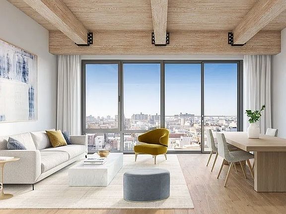 Schedule your exclusive on-site tour today! Model residence and sales gallery now open. In the heart of residential Williamsburg sits a historic brick building on Metropolitan Avenue, a former 1943 umbrella factory still intact with its notable charm. Following a vision for utilitarian chic residences, this remarkable building's dynamic narrative carries on with 69 stunning residential studios to three-bedroom loft condominiums. Residence 5D is a thoughtfully designed, split 2-bedroom layout with Southern exposure and outdoor space. The light, high ceilings and exposed timber beams are the first details you will notice as you enter. The primary suite is equipped with a 4-piece bathroom and walk-in-closet. The kitchen island opens out onto the expansive 23' living and dining room with access to your private balcony. See below to learn more about the key features in the fantastic offering. *Residence Features:* * Wide Plank California Collection Select Grade Wood Flooring * Exposed Timber Construction * High Ceilings * Energy-Efficient Soundproof Rating Wausau & Kawneer Windows * Central Heating & Cooling * Bosch Washer & Dryer * Solid Core Doors w/ Matte Black Hardware * Bertazzoni Range * Fully Integrated Bosch Appliances * Marra Blanca Countertop and Backsplash * Custom Kitchen Cabinetry w/ Matte Black Hardware * Moen Matte Black Faucet * Under Cabinet LED Lighting * Signature Catalina Deep Soaking Tub * Toto Wall Mount Toilet * Wetstyle Custom Sink *Building Amenities:* * Doorman * Onsite Parking with EV-Charger * Fitness Center with Precor Equipment * Landscaped & Furnished Roof Deck w/ BBQ Station * Rooftop Dog Run * Individual Storage * Bike Storage * Dogwash *Neighborhood:* Just blocks away from the busy Williamsburg waterfront, The Umbrella Factory sits steps from the L train in a coveted residential area of the famed neighborhood. With shopping, restaurants, nightlight galore, there is no shortage of amenities with the best of Williamsburg at your fingertips. The Umbrella Factory residents can be in Manhattan in less than 10 minutes with the Graham Avenue L train stop down the block. Images may be renderings or virtually staged, and/or represent model unit(s) and may not be reflective of the subject unit. Real estate taxes stated herein are estimates for the projected first year of condominium operation and do not reflect the building as fully completed. For further detail regarding anticipated increases in real estate taxes upon 100% completion of the building, prospective purchasers should review the Notes to Schedule A in the Offering Plan, as amended. Equal Housing Opportunity. All dimensions and square footages are approximate and subject to construction variances and may vary from floor to floor. Images are renderings and may not be reflective of the layout of the subject residence in this advertisement. This advertisement is not an offering. Sponsor reserves the right to make changes in accordance with the offering plan. The complete offering terms are in an offering plan available from the Sponsor. File No. CD18-0482. Sponsor: 722 Metropolitan LLC c/o SL Development 1178 Broadway, 3rd Floor #1321 New York, NY 10001.