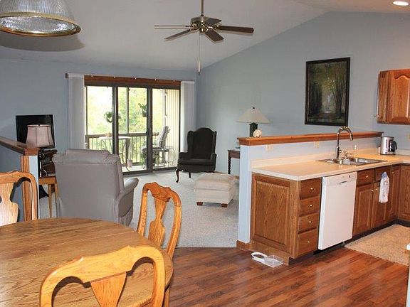 Lovely, well-cared for condo in popular Deerview Development. Enjoy an open floor plan living room with vaulted ceilings, roomy kitchen, and dining room on the main level, as well as 2 bedrooms and a bath with walk-in tub and laundry closet. 3 solar tunnels bring in extra light. Downstairs enjoy the walk out family room w/ green marble gas fireplace, a third bedroom and a 4th (non-conforming) room for an office, craft room or other use, as well as a 3/4 bath. Lots of storage. Enjoy the views of the creek from the covered balcony on the main level and the patio on the lower level! Heated garage. Association fees were $1,686 for 2021.