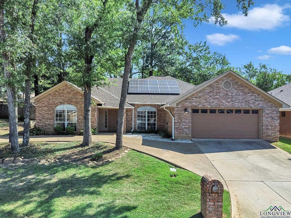 Welcome to this charming 3-bedroom, 2-bath home in the gated Towne Lake community! This well-maintained home offers a split-bedroom layout with an open-concept living area, perfect for both quiet evenings and entertaining. You’ll love the kitchen’s bay window, farmhouse sink, and built-in bookcase, adding both character and function. The primary suite features a relaxing jacuzzi tub, and the ceramic plank flooring throughout most of the home (with cozy carpet in the third bedroom/office) gives a modern, clean feel. Extras you’ll appreciate include the 2-car garage with a circle drive, privacy fence, and sprinkler system. The refrigerator, washer, and dryer all stay, making your move even easier. With solar panels keeping your electric bill around $50 a month, and recent updates like a new roof (6 months old), A/C (3 years old), and water heater (5 years old), this home is ready for you to enjoy. Come see what makes this home and community so special — it’s the perfect place to call home! Vacant. Owner/Agent Call/Text Paula Parker for showing instructions 903-315-6913