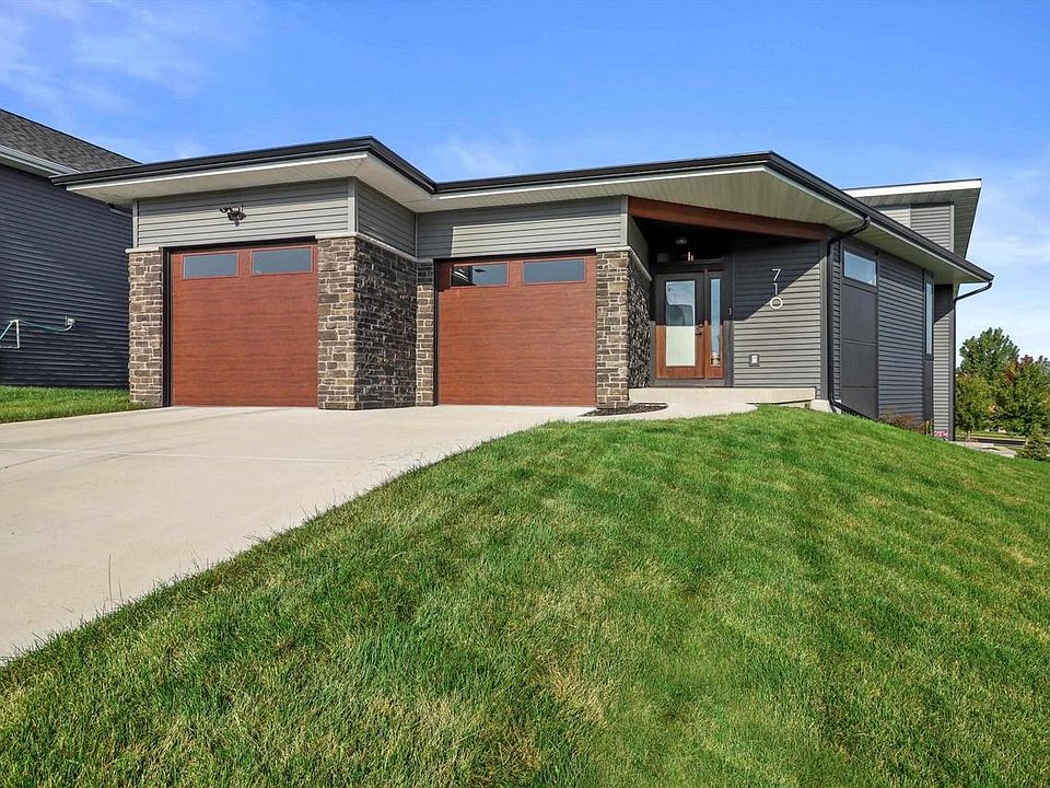 Beautiful 5 bed/3 bath contemporary home featuring a bright open floor plan and striking modern architecture. Vaulted ceilings and custom Smart Wings window treatments throughout. Gourmet kitchen boasts quartz countertops, tiled backsplash, a large island, and G/E Cafe appliances. The main level includes a sun-filled primary suite with walk-in closet and ensuite bath, plus two additional bedrooms, and a mudroom with plenty of storage. The finished lower level offers a spacious living room with built-in bookshelves, two bedrooms, and a full bath. Enjoy an insulated garage with EV charger, active radon mitigation, and a wide corner lot with sweeping countryside views. Close to Glacier Edge Elementary, minutes to Epic, and a quick drive to downtown Madison.