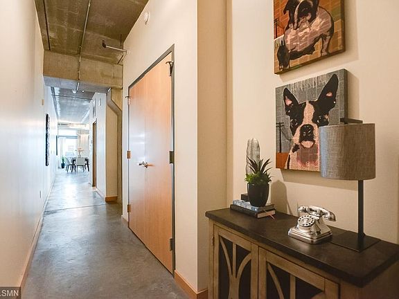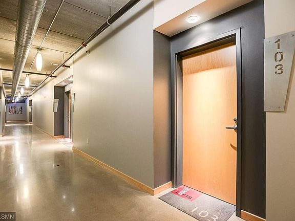 Walk to it all! Enjoy the high demand North Loop area convenient to Light rail station, Twins Stadium, Target Center, and Skyway Access. Plus, all the restaurants and entertaining options. This contemporary Loft style condo has beautiful maple cabinetry, polished concrete floors, concrete ceilings, and exposed duct work. Loads of storage with big closets throughout. Note wall of windows, glass door, and transom windows. Private laundry in unit, storage locker and one car heated parking space for owner. Walk up to spacious outdoor patio – room for lounging and grilling with gas line for homeowner’s grill. Pets allowed w/restrictions. SEE SUPPLEMENT